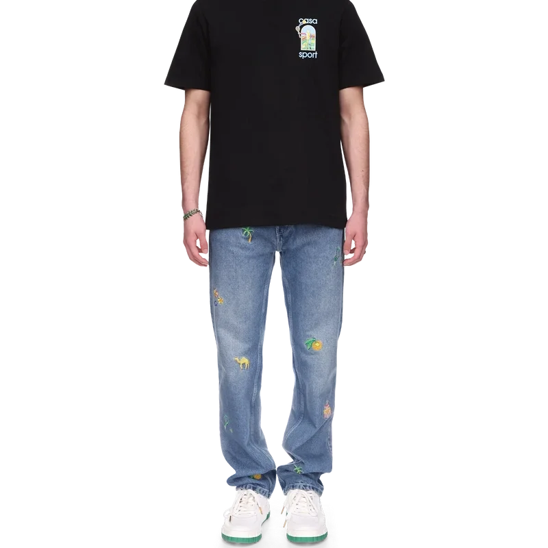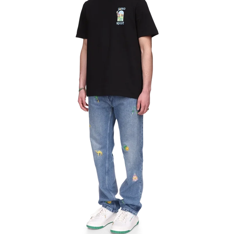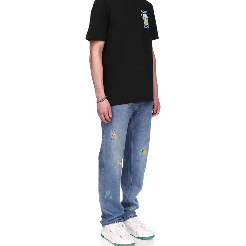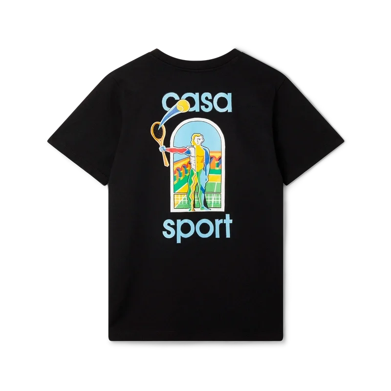 Tricoul Le Jeu Colora este un design imprimat inspirat de operele de artă afro-cubiste, îmbogățit cu picturi îndrăznețe și elemente cubiste, așa cum se vede în Nigeria. Confecționat din bumbac organic, cu opera de artă a casei pe spate și pe partea stângă a pieptului și completat cu un guler rotund clasic.