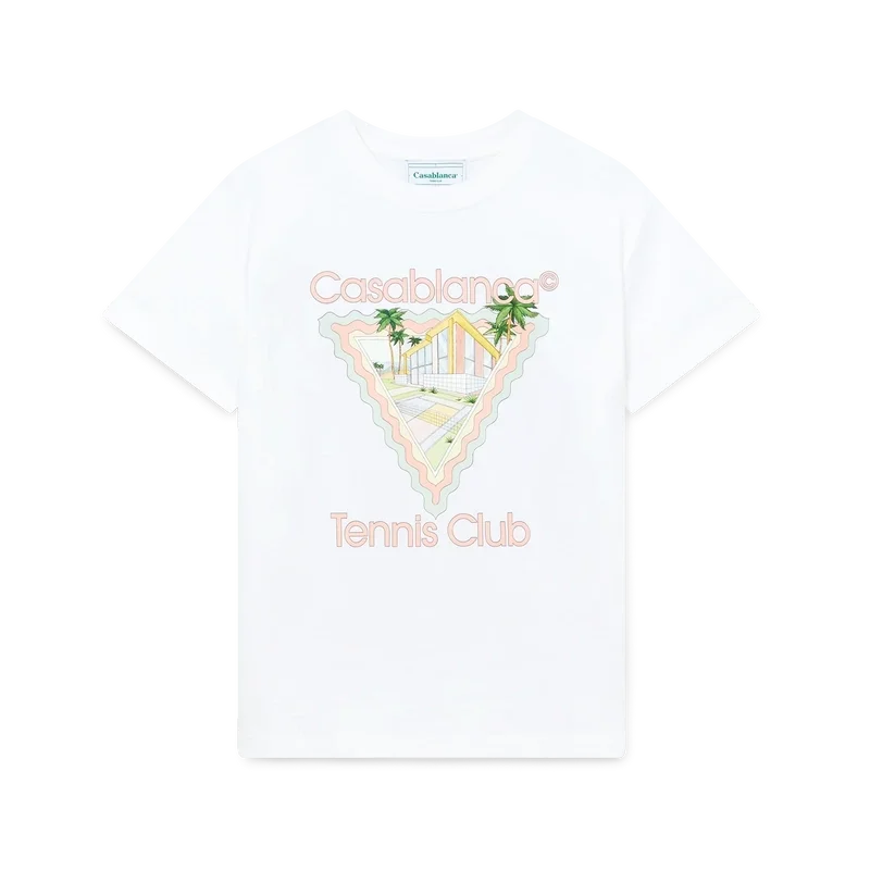 Tricou Maison De Reve este o tricou cu mâneci scurte și imprimeu, prezentând o grafică de sezon cu referințe la o casă din Palm Springs de la mijlocul secolului trecut și elemente de design semnătura – palmieri și un teren de tenis cu detalii inspirate de stilul Memphis Wave, care servește ca element de design fundamental – în culorile pastelate ale acestui sezon. Confecționat din bumbac organic, completat cu un guler rotund clasic.
