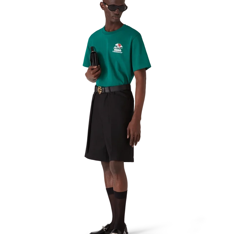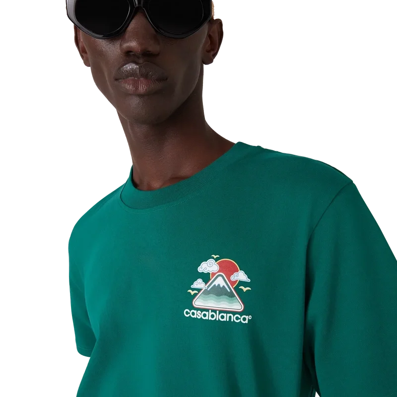 Tricoul Montagne Ondulee este o tricouă cu mâneci scurte și imprimeu, care prezintă o grafică de sezon inspirată din bogata iconografie japoneză a acestei colecții, cu un layout și o grafică simple, care transmit un mesaj vizual puternic cu doar câteva linii și culori, făcându-l unul dintre simbolurile colecției, confecționat din bumbac organic. Completat cu un guler rotund clasic.
