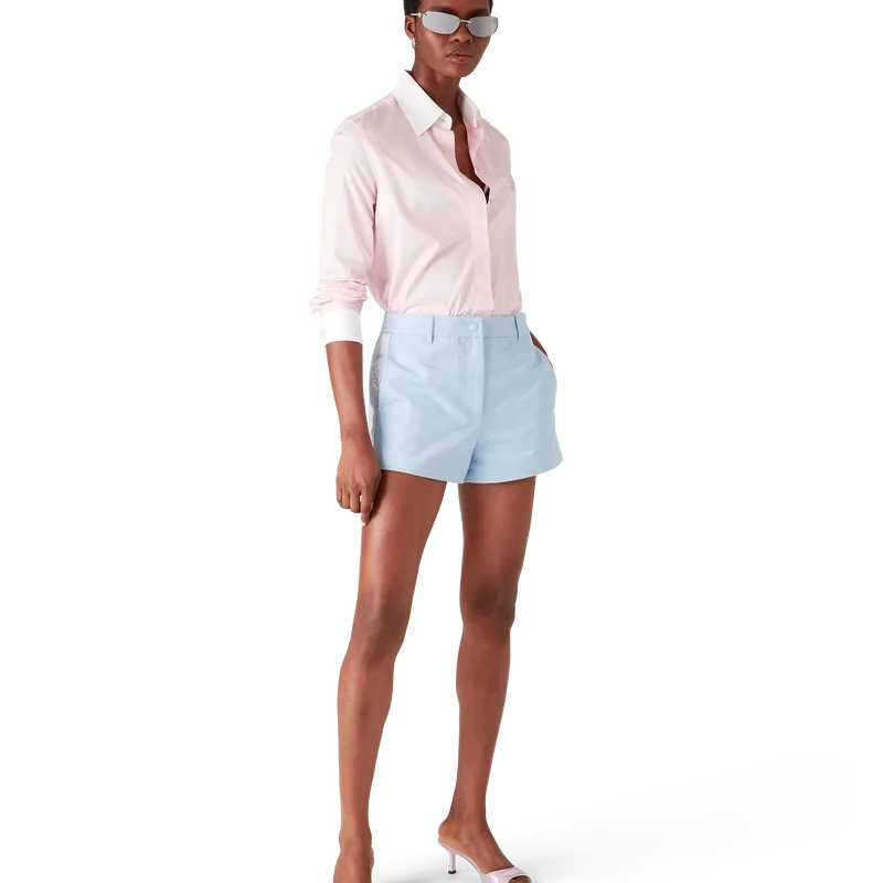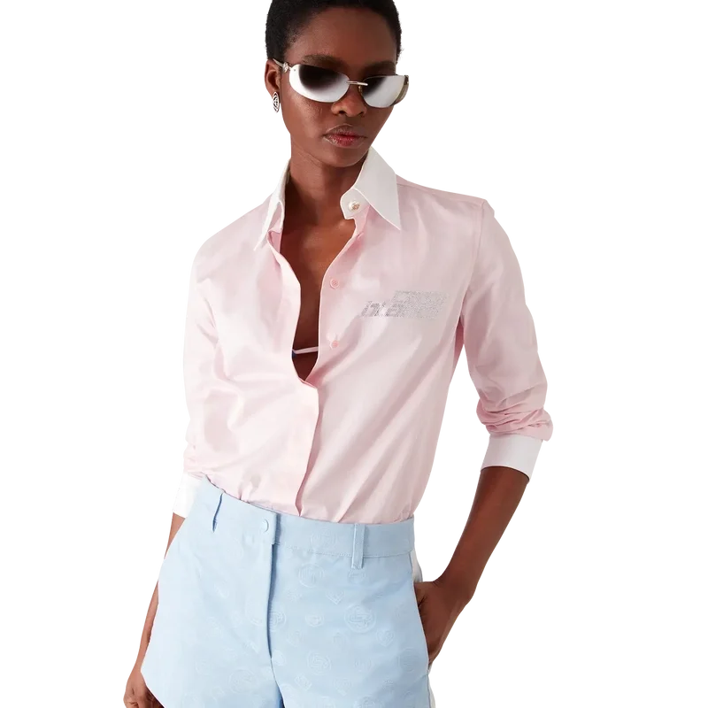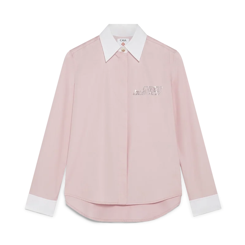 Cămașa cu mâneci lungi Crystal are un design croit, decorată cu o aplicație cu logo-ul Crystal. Completată cu manșete albe contrastante și guler în V, închidere cu nasturi ascunși, nasturi din corozo cu logo-ul Cc intercalat, nasturi din perle cu logo-ul Cc intercalat la guler și manșete.