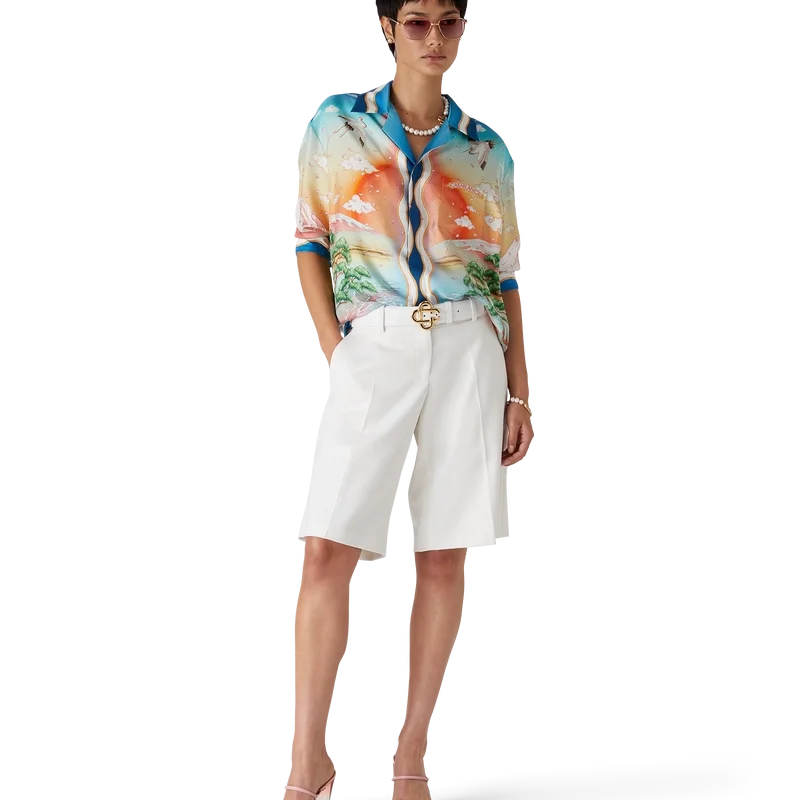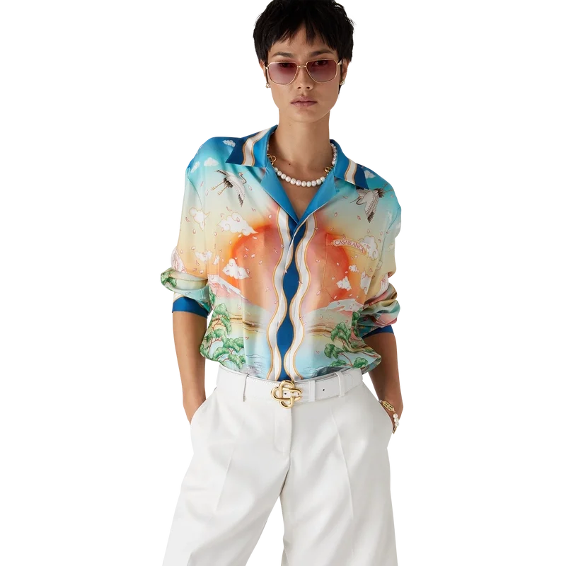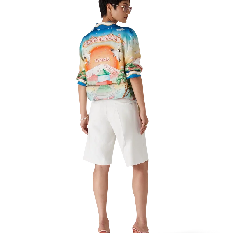 Cămașa din mătase Tennis Club este un model cu mâneci lungi și imprimeu integral, care prezintă versiunea din acest sezon a Tennis Club, folosind layout-ul nostru clasic, dar cu artă tradițională japoneză, făcând-o o piesă cu o poveste foarte puternică și o modalitate frumoasă de a îmbina stiluri artistice, confecționată din țesătură de mătase twill.