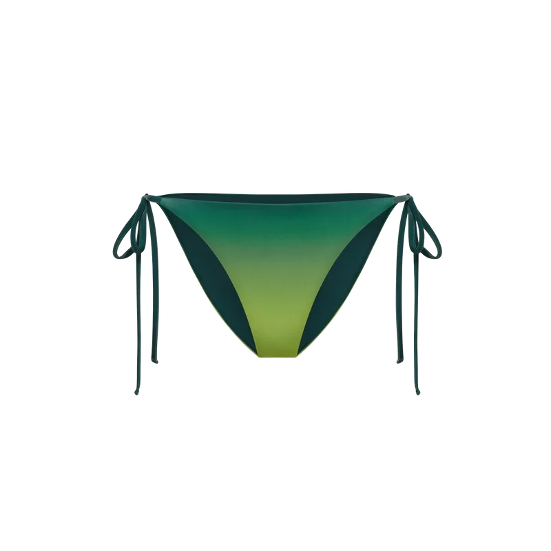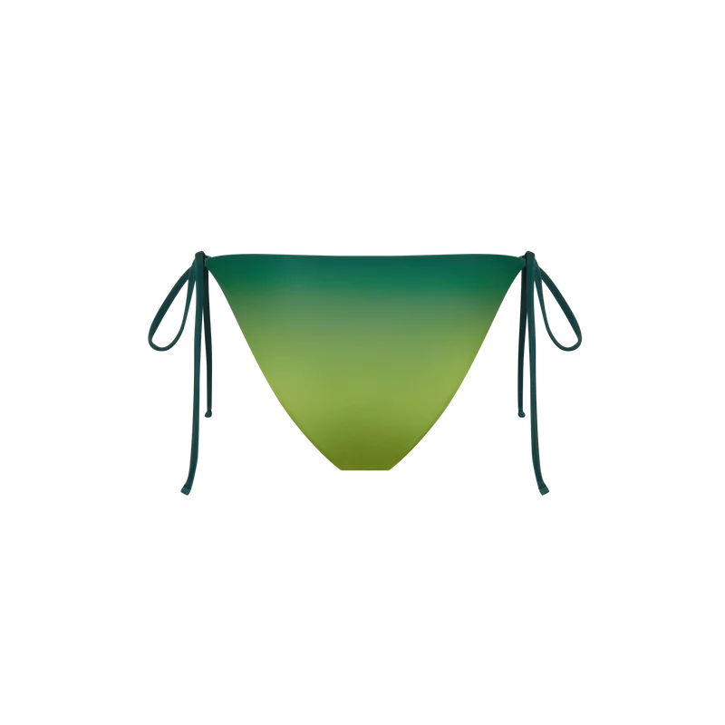 Slipul de bikini Gradient este un imprimeu realizat din țesătură tehnică pentru costume de baie. Completat cu șnururi albe contrastante – această piesă este concepută pentru a fi purtată cu sutienul de bikini asortat.