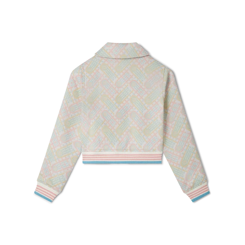 Jacheta bomber Ping Pong este un model de pantaloni scurți, cu mâneci lungi, cu o siluetă familiară, prezentând imprimeul caracteristic al casei, cu mingea de ping-pong în mișcare – preluat din colecția Japan. Confecționată dintr-un material din lână virgină cu monogramă Ping Pong și completată cu buzunare frontale cu accesorii placate cu aur, detalii contrastante din material rib la tiv și manșete, guler, închidere cu fermoar frontal cu logo în formă de diamant și etichetă cu marca Casablanca.
