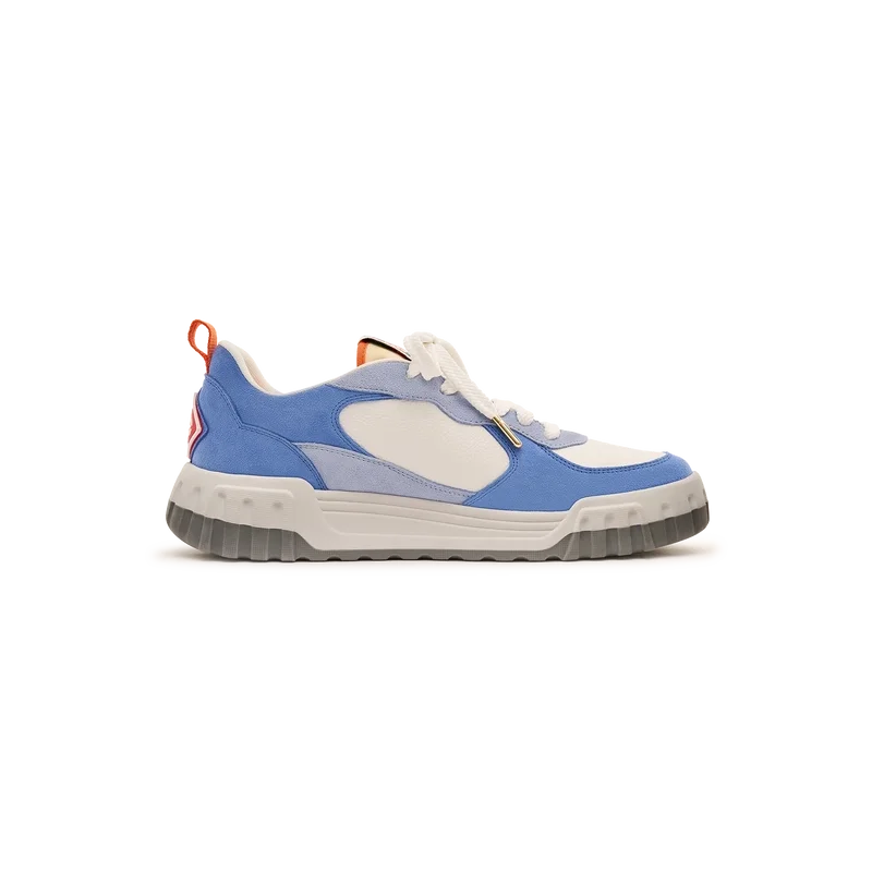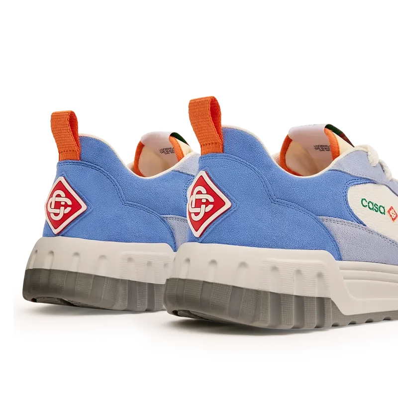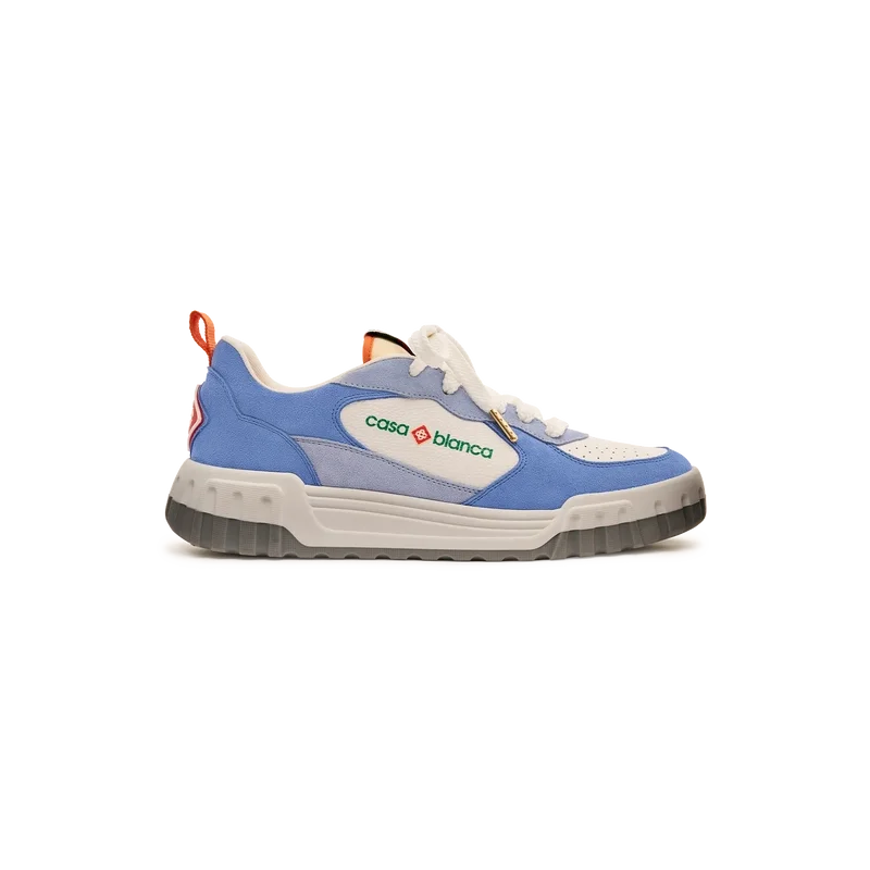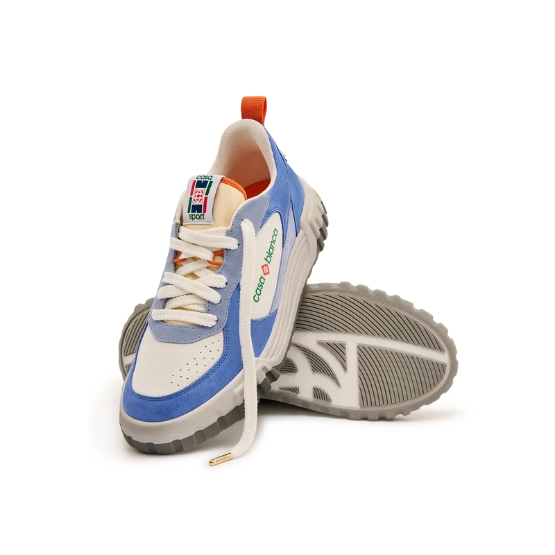 Limbajul de design al modelului Court Sneaker reflectă siluetele iconice ale anilor ’90. Culorile prezente pe toată talpa de cauciuc sunt o combinație între codurile rafinate ale tenisului și arhitectura clasică și creează o paletă unitară pe toată suprafața pantofului, cu accent pe culorile primare, contrastate de albul specific tenisului, pentru a crea o poveste cromatică cu accent sportiv.Partea superioară a încălțămintei prezintă linii integrate și fluide ale panourilor, ca un omagiu adus siluetelor iconice ale anilor ’90. Brandul Casablanca este evident pe toată suprafața, incluzând motivul diamantului, semnătura brandului, pe călcâi, panouri laterale cu sigla din silicon și eticheta țesută cu motivul terenului de tenis pe limbă și talpă interioară, dând naștere numelui său, Court.