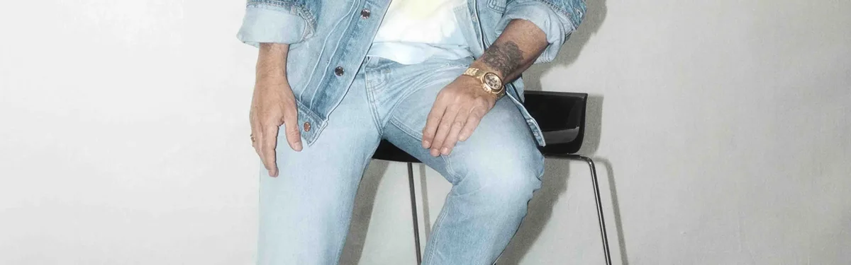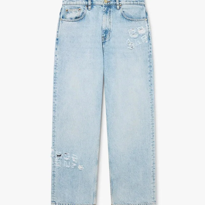 Blugii din denim cu spălare deschisă și grafite au un design cu croi drept, prezentând logo-ul Casablanca al casei de modă într-un text în stil grafit gravat în țesătură. Completați cu accesorii placate cu aur, bucle pentru curea, buzunare față și spate, o emblemă din piele cu marca și închidere cu fermoar.