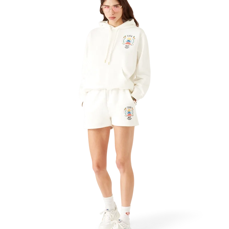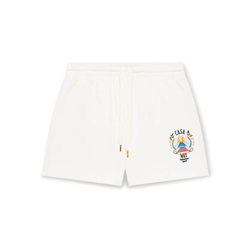 Pantalonii scurți de trening Casa Way Mountain sunt o piesă de îmbrăcăminte sport realizată din țesătură de bumbac organic, prezentând grafica sezonieră a casei reinterpretată pentru acest sezon. Prezintă o bandă elastică în talie cu șnur de strângere cu capete aurii, buzunare în cusătură și un buzunar aplicat în spate.