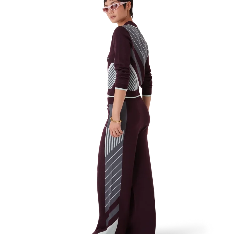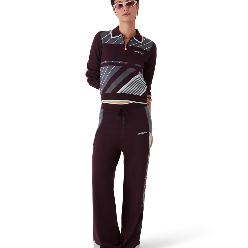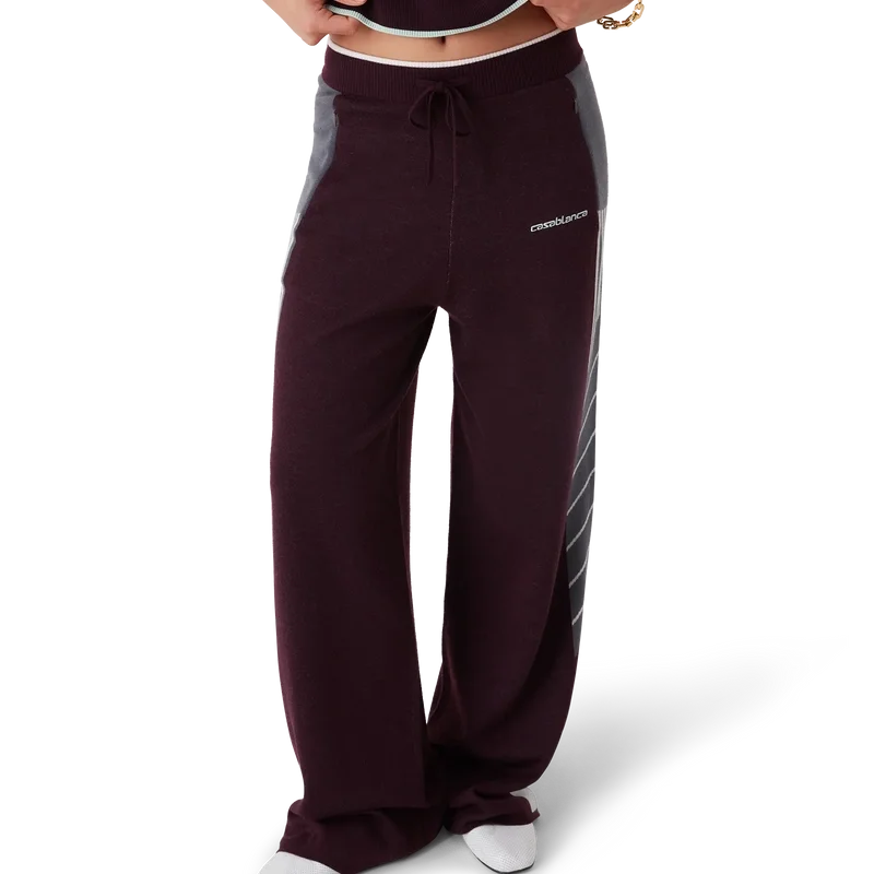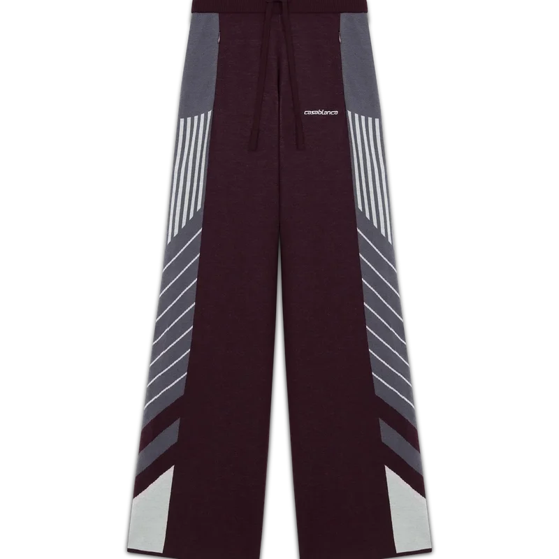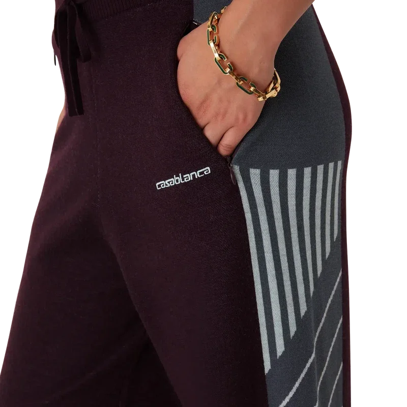 Pantaloni Diagonal Tennis Merino au un design tricotat, cu dungi sportive diagonale și logo Casablanca brodat. Sunt prevăzuți cu o bandă elastică în talie, buzunare laterale în cusătură cu închidere cu fermoar și cordon de strângere.