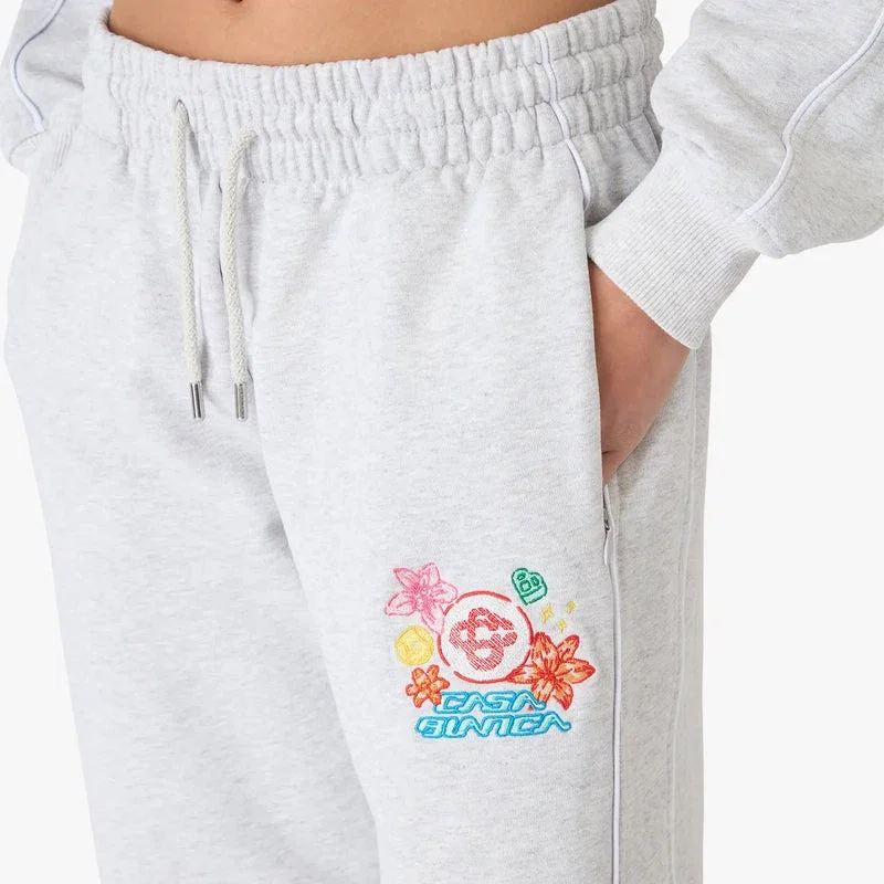 Pantalonii scurți de trening gri brodați au un design rafinat, prezentând colajul grafic al sezonului care reprezintă iconografia și elementele de design pentru noul sezon, cu interpretări ale logo-ului, feței zâmbitoare și florii de orhidee. Completate cu o bandă elastică în talie, închidere cu șnur, detalii cu bordură pe părțile laterale, buzunare în cusătură și un buzunar aplicat în spate. Concepute pentru a fi purtate cu hanoracul cu glugă asortat.