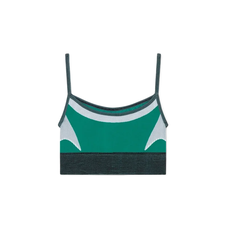 Sutienul fără cusături Casa Sport are un design inspirat de îmbrăcămintea sportivă și prezintă Diamond Monogram, semnătura casei. Această piesă este confecționată dintr-un material elastic fără cusături, cu panouri de culori cu diferite niveluri de rezistență, oferind susținere purtătoarei, fiind completată cu bretele subțiri.