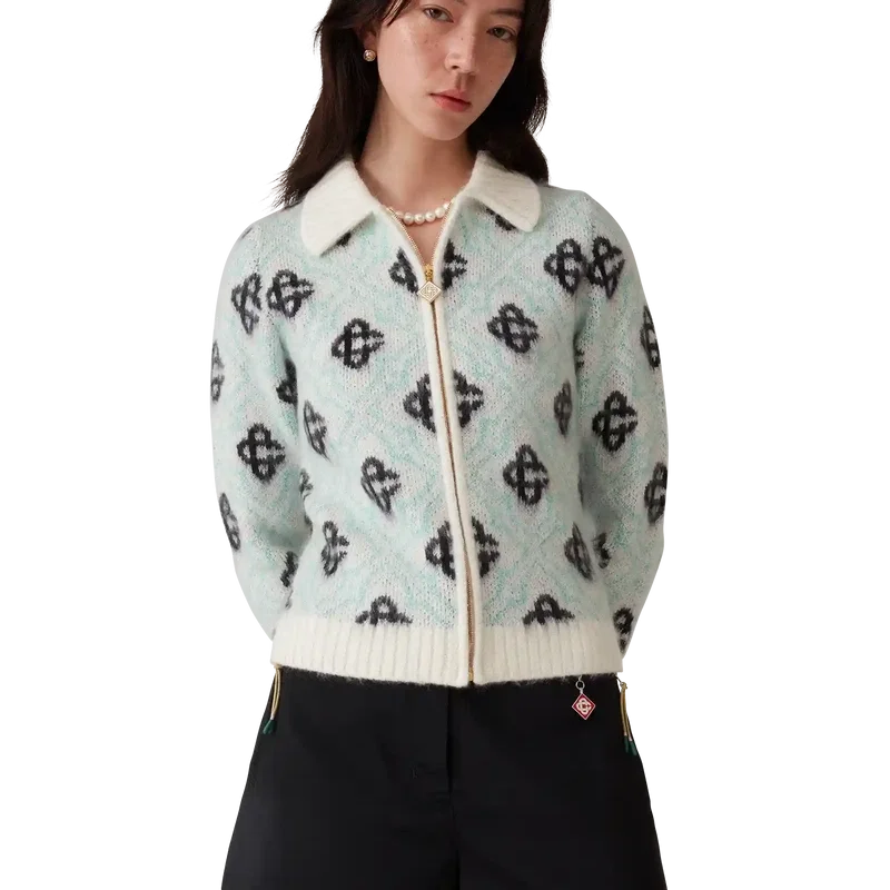Pulover cu fermoar din mohair cu monogramă