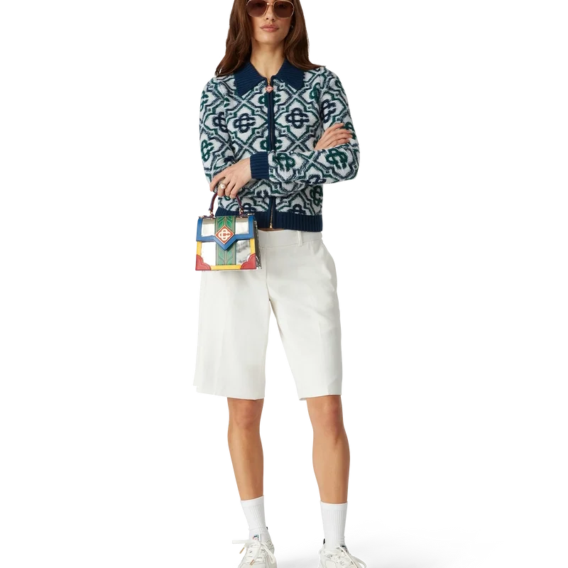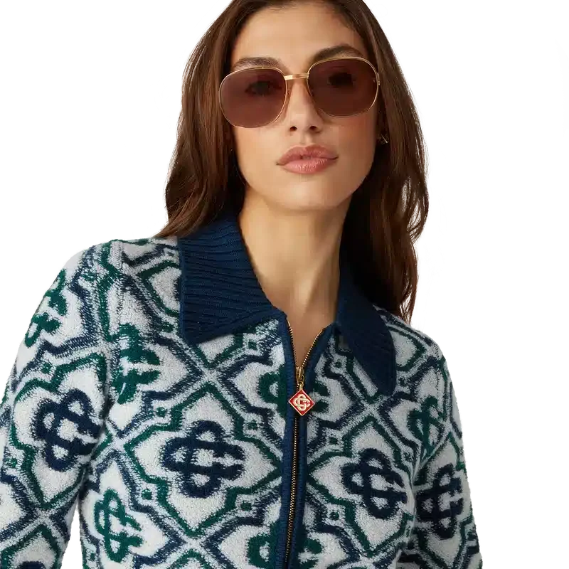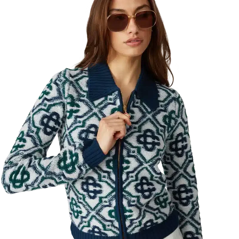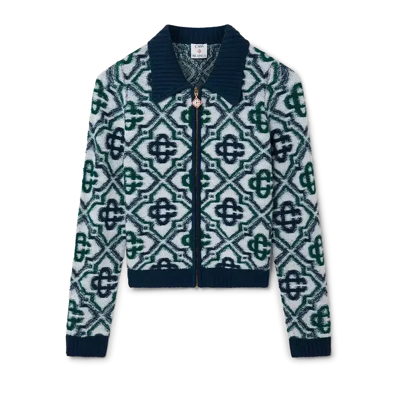 Puloverul cu fermoar din tricot Monogram este un model clasic, cu monograma semnătura a casei, confecționat dintr-un tricot din amestec de lână. Prezintă închidere cu fermoar în față, guler, manșete, tiv și buzunare laterale cu nervuri în contrast.