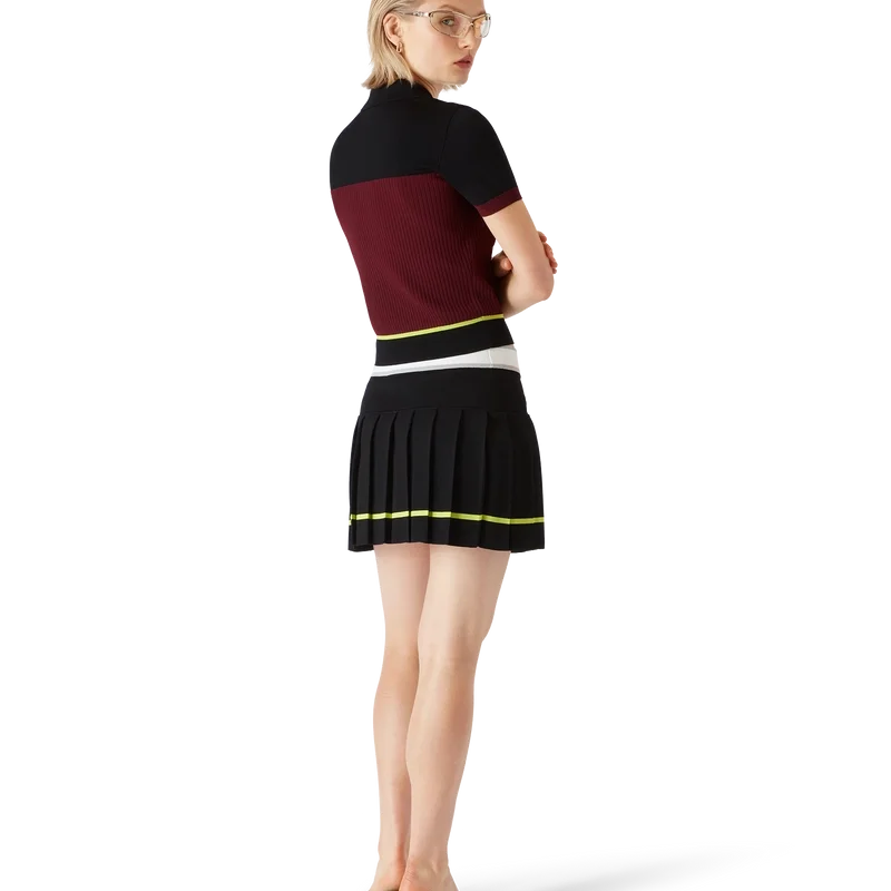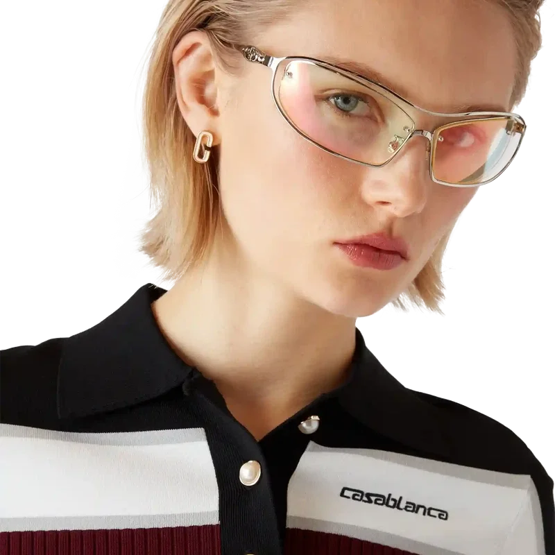 Tricou polo cu mâneci scurte și dungi are un design rafinat, cu o construcție clasică din tricot, iar silueta întruchipează o eleganță discretă, cu o croială slim. Este completat de un guler cu nervuri, o placket cu nasturi și nasturi cu margini aurii, semnătura mărcii.