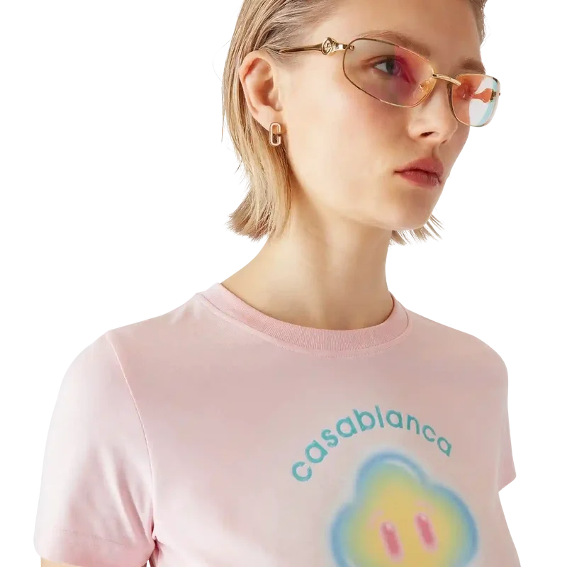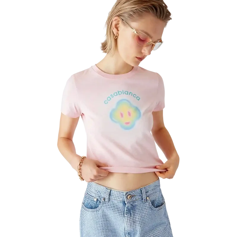Tricou cu pantaloni scurți și croială ajustată Airbrush Smiley este inspirat de evoluția feței zâmbitoare în scena muzicii house. Bazându-se pe explorările anterioare cu tehnica aerografiei, designul se inspiră din prezența sa iconică pe fluturași și pe coperțile primelor albume de muzică house. Completat cu un guler rotund clasic cu nervuri.