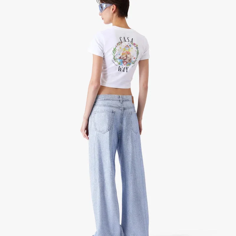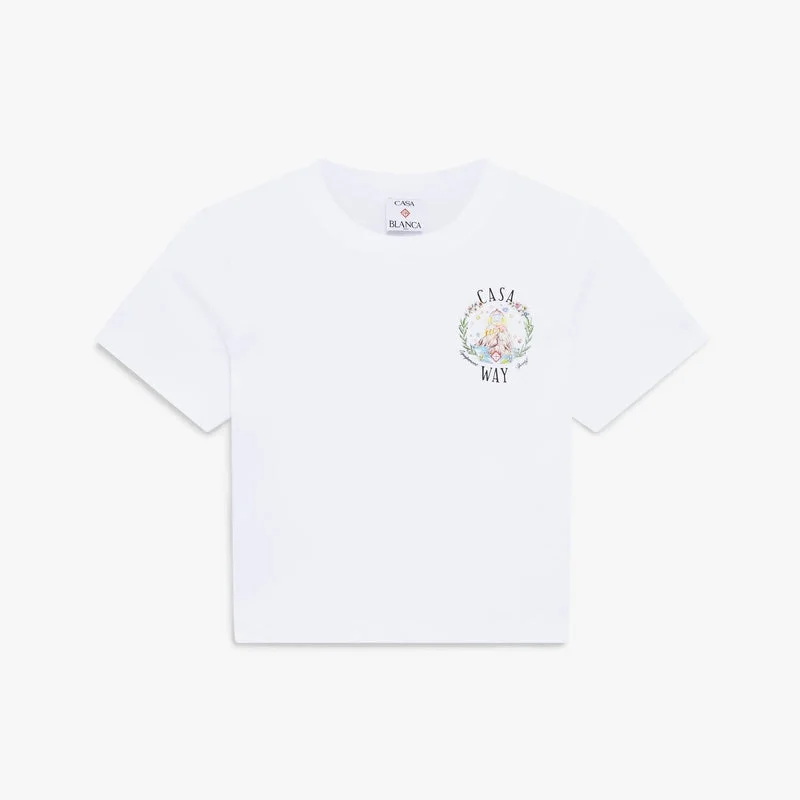 Tricou cu pantaloni scurți pentru bebeluși „White Casa Way” are un croi scurt și prezintă grafica Casa Way specifică sezonului, care descrie viziunea utopică a insulei Ibiza ca destinație pentru un pelerinaj aproape religios de descoperire prin peisajul său muzical divers. Se remarcă prin gulerul rotund clasic și silueta ajustată.
