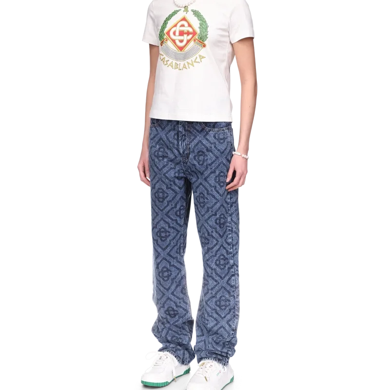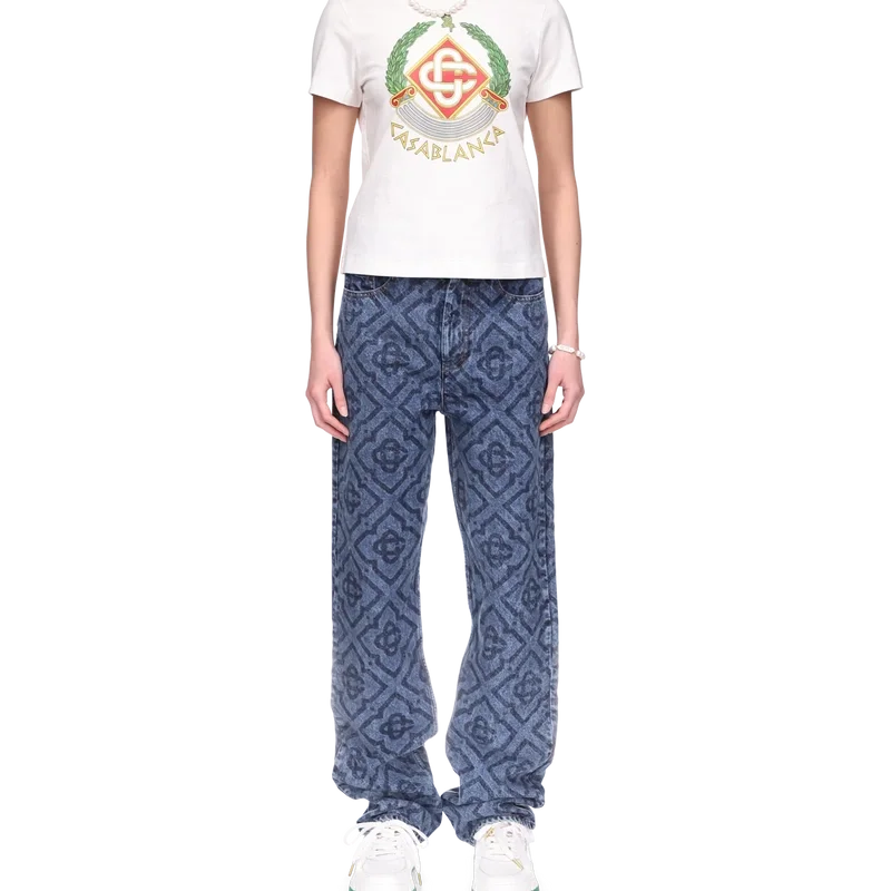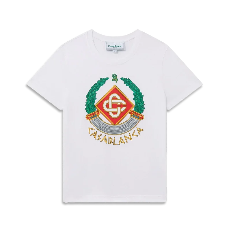 Tricou Casa Crest este un model cu mâneci scurte și imprimeu, confecționat din bumbac, care prezintă un design sezonier inspirat de coloana ca simbol al Greciei și versiunea noastră a unui logo distorsionat, creând o imagine a Casei Crest din vremuri străvechi. Are inscripția „Casablanca” scrisă în stilul textului grecesc antic și guler rotund clasic.