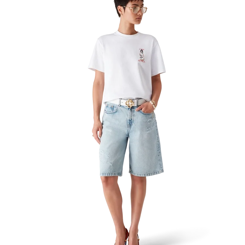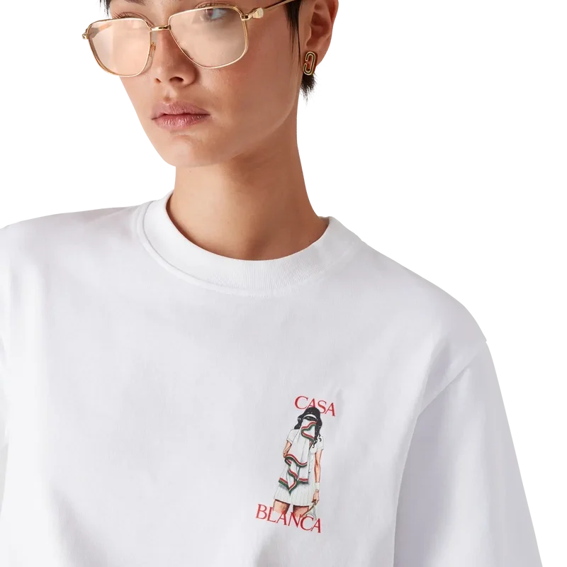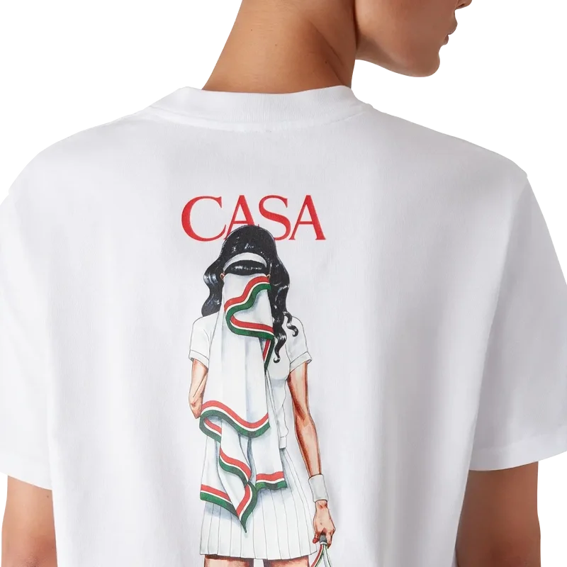 Tricoul Tennis Girl este o tricouă cu mâneci scurte și imprimeu, care prezintă o grafică de arhivă, reintrodusă exclusiv în acest sezon. Inspirat de elementele de design caracteristice casei și de tenis, este completat de un guler rotund clasic.
