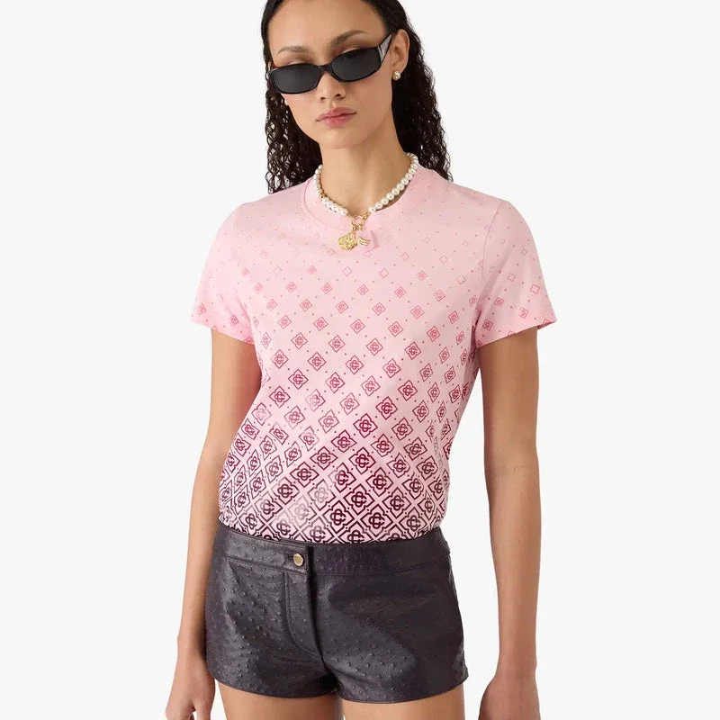Tricou cu pantaloni scurți și monogramă în degrade roz are un design rafinat, prezentând grafica în degrade a sezonului care imită culorile bogate ale auberginei cu monograma semnătură a casei. Completat cu un decolteu clasic rotund și o siluetă relaxată.
