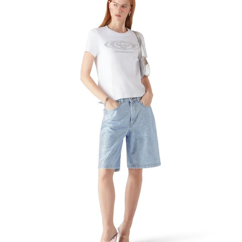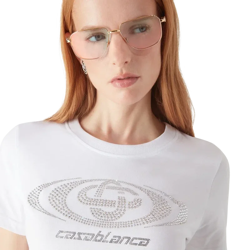 Tricou ajustat cu logo Crystal Warped este un model cu mâneci scurte, care prezintă logo-ul Warped al casei, realizat din cristale de sticlă. Completat cu un guler rotund clasic.
