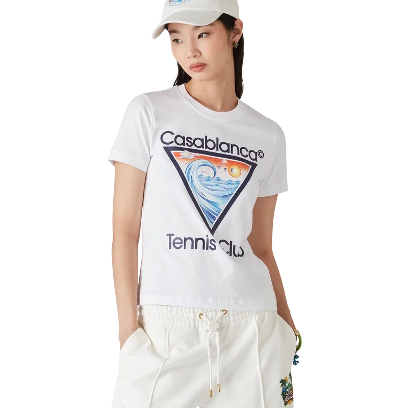 Tricoul Tennis Club Icon este un model cu mâneci scurte, imprimat, confecționat din bumbac organic și prezintă o interpretare sezonieră a graficii noastre emblematice Tennis Club Icon, cu elemente de design inspirate din natură, arhitectură și tenis. Completat cu un guler rotund clasic.