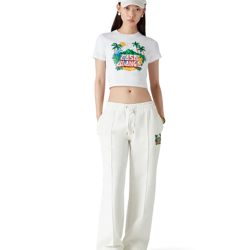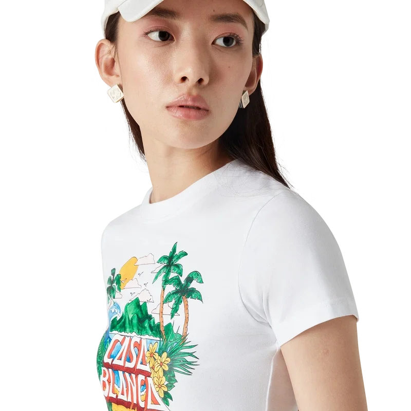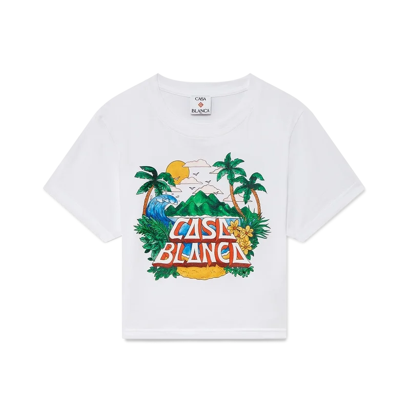 Tricoul scurt Casa Beach Wave este un model cu mâneci scurte și imprimeu, confecționat din bumbac, cu un design caracteristic inspirat de un tricou de suvenir pe care l-ai putea cumpăra într-o vacanță la mare. Completat cu un guler rotund clasic, este conceput să se potrivească deasupra buricului.