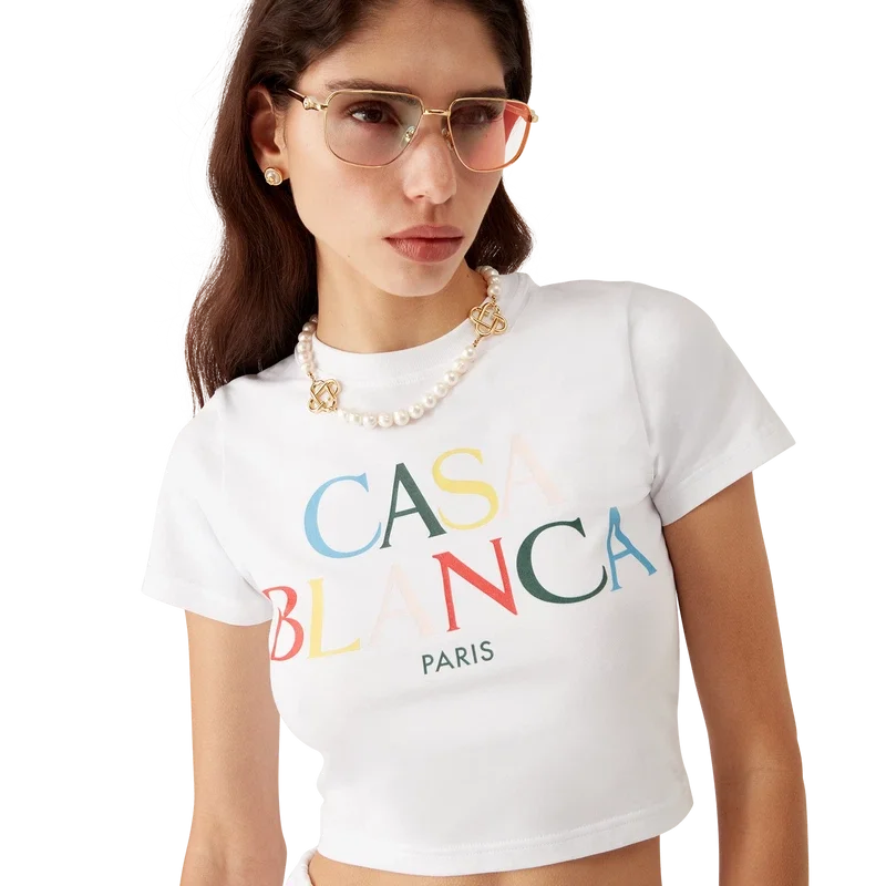 Tricou scurt cu logo suprapus este un model imprimat, confecționat din bumbac Pima, cu logo-ul casei suprapus în culori pastelate pe piept. Completat cu un guler rotund clasic – conceput pentru o croială slim.