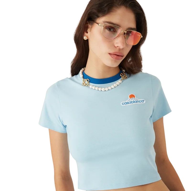 Tricoul scurt Montagne este un model cu mâneci scurte, confecționat din bumbac organic, cu grafica casei de modă – un logo care la prima vedere arată ca un munte, dar care, dacă te uiți mai atent, se citește Casa. Completat cu un guler rotund clasic și logo-ul Casablanca al casei de modă – conceput pentru o croială slim.